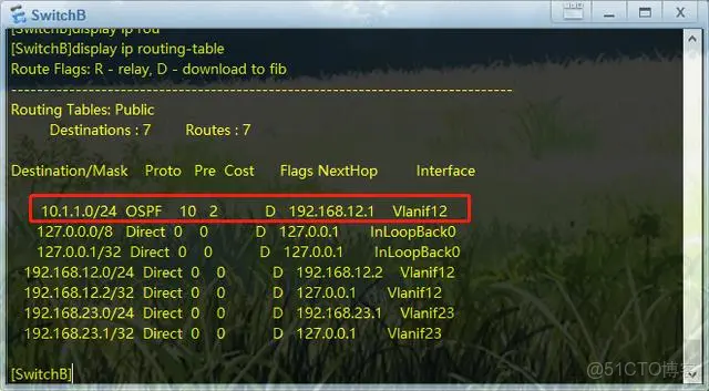 [SwitchB] ospf [SwitchB-ospf-1] filter-policy ip-prefix huawei import结果验证