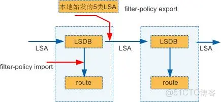 在链路状态路由协议中,各路由设备之间传递的是LSA信息,然后设备根据LSA汇总成的LSDB信息计算出路由表。以OSPF为例,filter-policy生效规则如下: